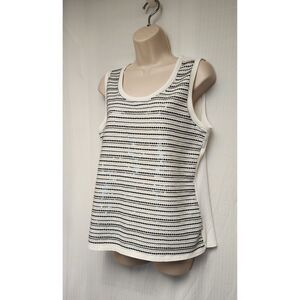 Zenergy By Chicos Tank Top Off White Ribbed w/Silver Sequins Size 2(L-12)
