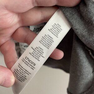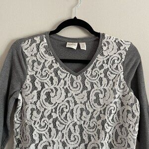 Zenergy By Chicos Women SZ 0/XS Gray W/White Lace Front Overlay V Neck Top