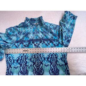 Elevate your wardrobe with this vibrant and stylish Zenergy by Chico's jacket, designed for effortless elegance. The captivating blue and aqua pattern complements the lightweight polyester material, ensuring comfort and charm. Ideal for all-season wear, this jacket combines fashion with functionality, offering a chic addition to any ensemble.