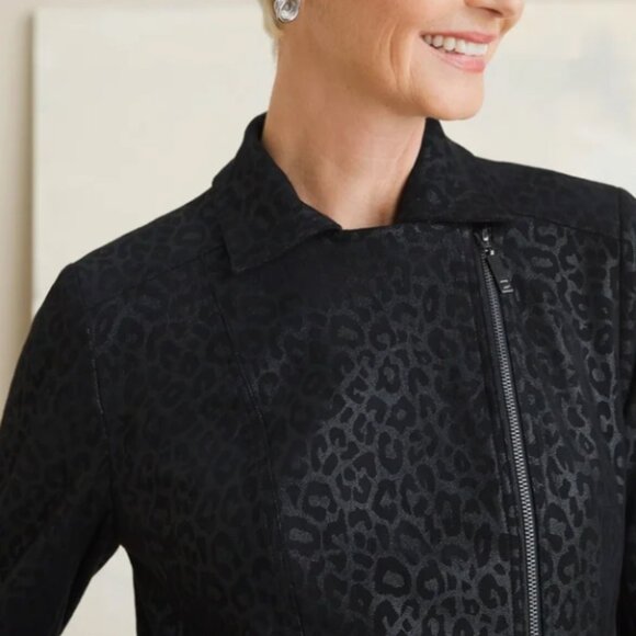 Zenergy Chico’s Animal Print Black Moto Biker Lightweight Jacket 1