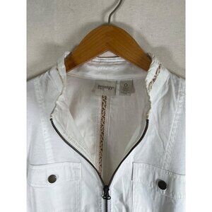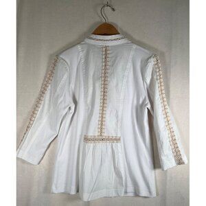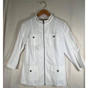 Zenergy Womens Size 0 White Zipper Jacket Top Knit insert Lace Embroidered Trim