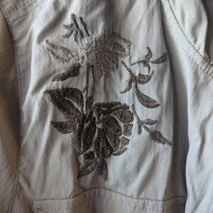 Olive-gray jacket and cropped pant set. Nice embroidery on jacket. Size 1. Zenergy brand.