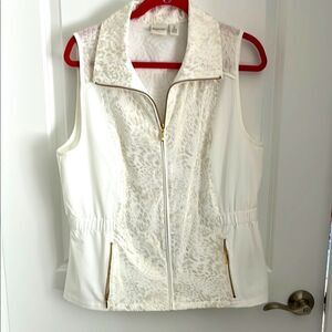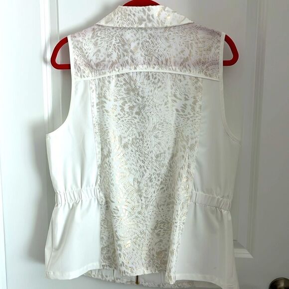Zenergy by Chico’s Canella White with gold animal print Design Vest Jacket