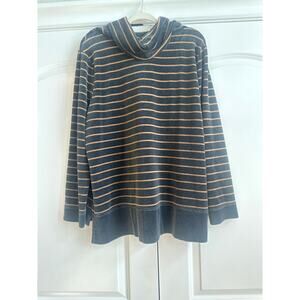 Zenergy by Chico's Charcoal and Golden tan Striped Cowl Neck Popover Sweater