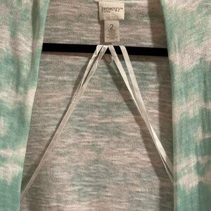 Zenergy by Chico's Size 2 Light Weight Green Tie-dye Cardigan with draping lapel