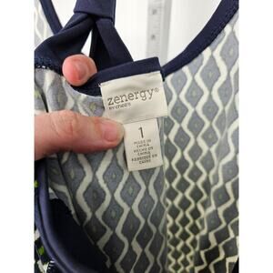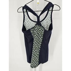 Zenergy by Chicos Womens 1 (L) Racer Back Athletic Tank Top Navy and Lime Green