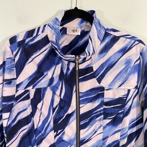 Zenergy by Chico's Women's Blue Marble Print Light Jacket Size 2