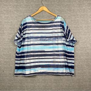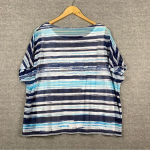 Zenergy by Chicos Womens Blue/Black Striped Short Sleeve Multi Layer Blouse 2 M