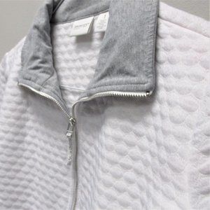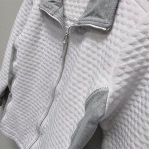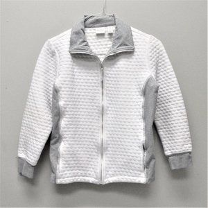 Stay stylish on the go in this lightweight zippered jacket. It has only been worn a couple of times and is super cute and comfortable. There is a zipper going down the front and it has 2 front pockets.