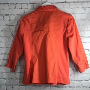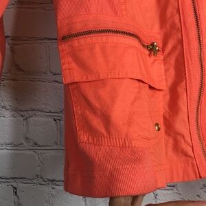 Zenergy by Chicos sport jacket in orange color with hoodie.