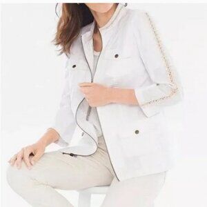 Zenergy by Chico's white Zip front Jacket with Macrome Details