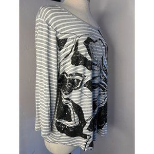 Zenergy by Chicos women’s 3/US 16–18 tunic Gray White Stripe Floral 3/4 Sleeve R