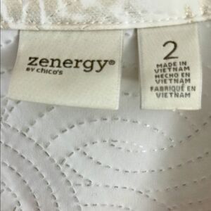 Zenergy by Chico’s Canella White with gold animal print Design Vest Jacket