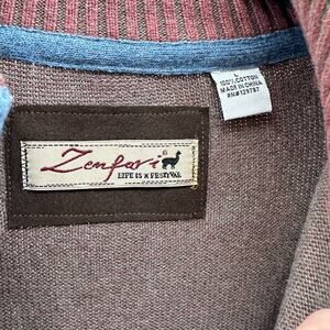Zenferi 'Life Is a Festival' Zip Up Sweater Men's Maroon L Long Sleeve High Neck