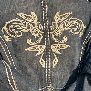 Zenim Denim women’s blue jean embroidered bling rhinestone jacket. Size L NWOT