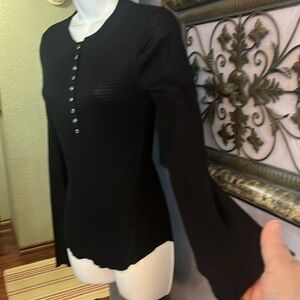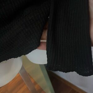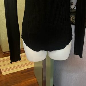 Zenana black long sleeved top- stretchy waffle material - raw edge hem & cuff -perfect for out & about/ beach/ vacation/ work/ casual/lounging/ etc- nice feel-gently preloved