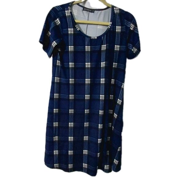Zennilo Dress Size Small Blue Multicolor Plaid Short Sleeve Tunic With Pockets