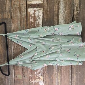 Elegant mint wrap camisole with floral accents. Features a wrap style.
