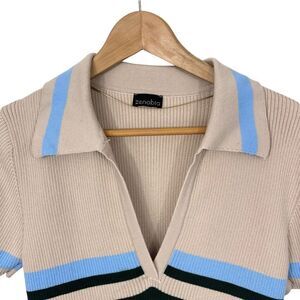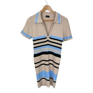 Zenobia Ribbed Knit Collared Mini Dress, small