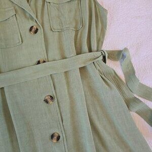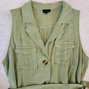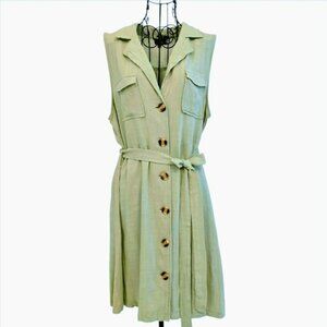 Zenobia Women's Mini Dress Size 1XL Light Green Button Down Sleeveless Tie Belt