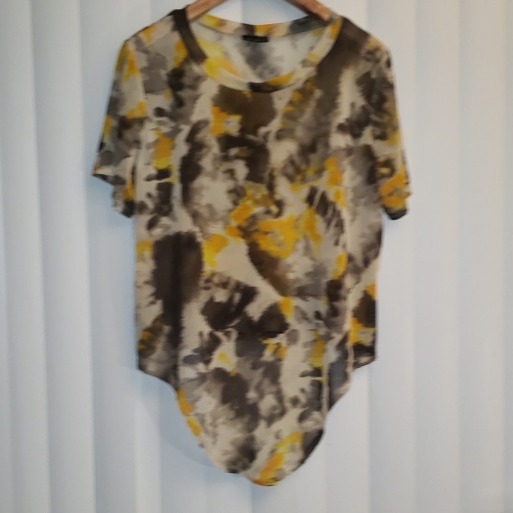 Multi color cute blouse sheer with Asymmetric low in the front never been worn