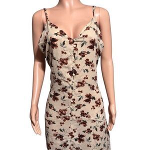 NWOT Spaghetti strap adjustable straps, side zipper with buttons on the front 100% polyester beige flowy dress adds an elegant touch to any occasion. Flirty, casual, y2k, party, holiday, cute, boho, bohemian,