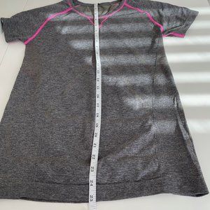 Good used condition with only one small snag on the pink top (please see photo's). Great for working out and as a baselayer!