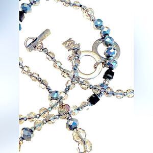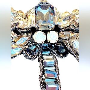 Absolutely fabulous huge dimensional dragonfly encrusted with huge crystals. The pendant 4” x 3” hangs from a 32” Long crystal necklace which can be worn long or doubled. Definitely a statement piece. Please see all photos for full description.