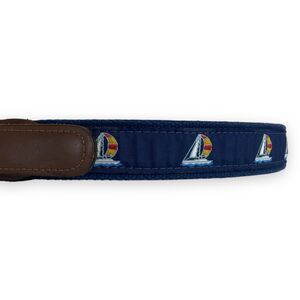 Elevate your style with this Zep-Pro belt, crafted with a solid brass buckle and quality materials like leather and cotton. The navy canvas strap features a braided/woven design, making it perfect as a golf or dress belt. This men's belt is a size 42 and adorned with a buckle accent, making it a stylish accessory for any outfit. The belt's nautical theme, combined with the USA-made quality, adds a touch of patriotism to your wardrobe.