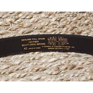 The Zep-Pro Alabama Crimson Tide Men's Collegiate Croc Leather Belt in size 42 is the perfect accessory for any Alabama football fan. The brown leather belt features the iconic Alabama Crimson Tide team logo, making it a stylish and functional way to show your support for the team. The belt is designed specifically for men and is a must-have for any fan looking to add a touch of team spirit to their wardrobe.