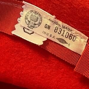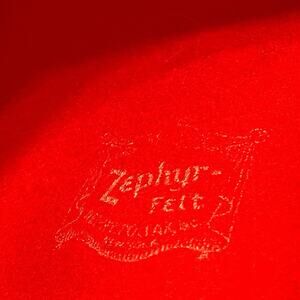 The Zephyr Cloche Hat is a vintage accessory from the 1940s made of 100% wool in a classic red color. This size 6 3/4 hat exudes a librarian chic look, perfect for everyday wear. With its original design and United States manufacture, this cloche hat adds a touch of vintage charm to any outfit, embodying the style of a secretary or geek from the past. Ideal for women looking for a unique and retro accessory to complete their ensemble.