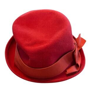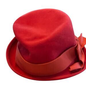 Zephyr Cloche Hat Vintage Felted Fur or Wool Women Size 6 3/4 Red Librarian Chic