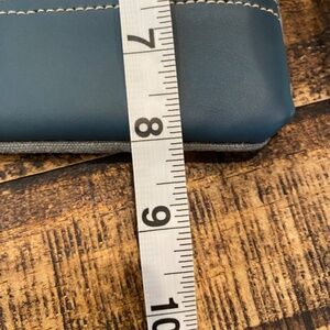 Condition: Please see pictures; there is a small indentation within the leather and a scratch near the zipper.