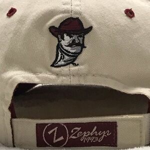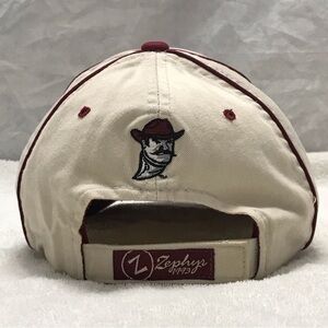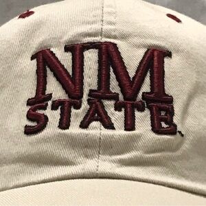 C5 Hat/Cap Zephyr The Z Hat Adult Adjustable Hook & Loop Strap New Mexico State Logo on face in MaroonBlack type AND Zephyr 1993 patch on rear strip / Tan with Maroon trim and accents with Maroon underbill. The New Mexico State University teams are called the Aggies, a nickname derived from the university's agricultural beginnings. The mascot is known as "Pistol Pete". NMSU's colors are crimson and white. Since 2023 the Aggies have competed in Conference USA in all men's and women's sports. New Mexico State sponsors six men's and ten women's teams in NCAA sanctioned sports.[3] The athletic director is Mario Moccia, who has held the position since January 2015. 100% Cotton