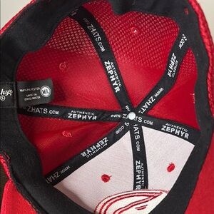Bold red hat with striking white basketball logo. Perfect for fans.