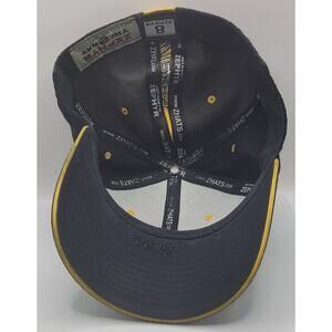 The Zephyr University of Iowa Hawkeyes Fitted Cap is a black wool/acrylic cap in size 8, officially licensed by the NCAA for fans of the Iowa Hawkeyes football and basketball teams. This unisex adult cap features the team's logo and is suitable for regular season games and everyday wear. Made in the Russian Federation, this cap is a stylish way for fans to show their support for the Iowa Hawkeyes in a comfortable and high-quality piece of fan apparel.