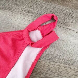 🌺 Zeraca Halter Coral Pink Bright Fringe Halter Tie Bikini Set L (12-14)