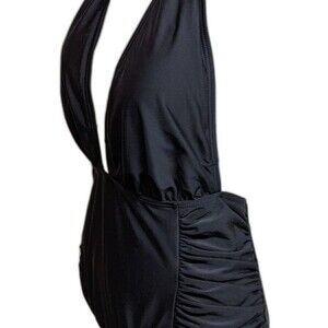 Zeraca Swimsuit Medium Plunge Halter One-Piece Tie Back Black M NWT NEW