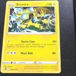 Zeraora Pokémon card featuring vibrant yellow and blue colors. Perfect for collectors.