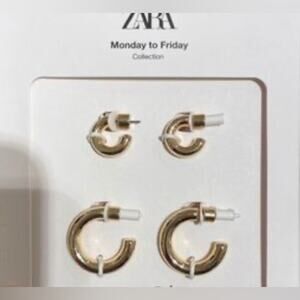 Zero Gold Tone Thick Open Hoop Earrings There are 2 pairs on this card NWT