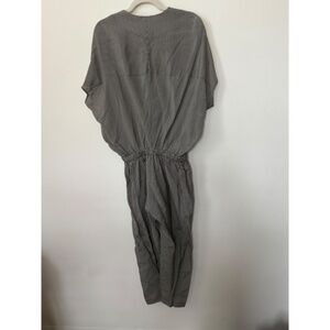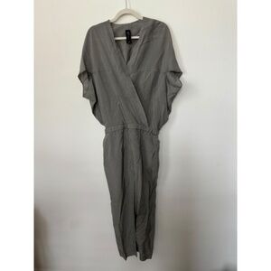 Features: Loosely draped sleeves, surplice styling and a gathered, banded waist create a relaxed blouson effect on a lightweight, woven jumpsuit with cropped legs.