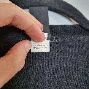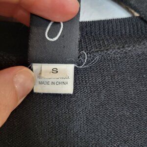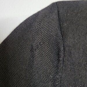 Tags/keywords: merino wool sweater, button-up sweater, Zero Maria Cornejo, long sleeve cardigan, winter sweater, black wool top, small size cardigan, luxury knitwear, designer cardigan, lightweight sweater, warm cardigan, pre-loved sweater, women's black cardigan, dark academia, goth, twee, nerd, librarian, secretary
