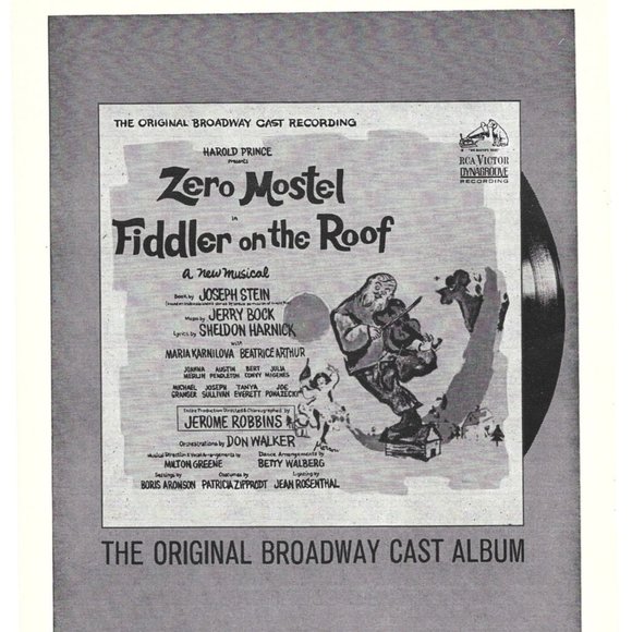 Zero Mostel Fiddler on the Roof RCA Victor Record AD 1960s Vintage Print Ad 9 in
