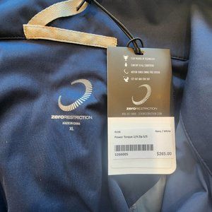 New, with tags. This Zero Restriction 1/4 Short Sleeve Golf Wind Jacket comes directly from the 2023 US Open at Los Angeles Country Club. Size: XL. Color: Navy Blue.