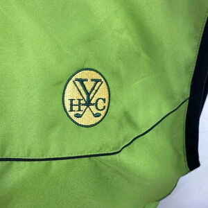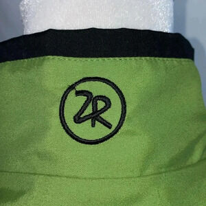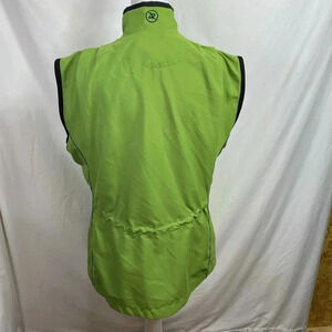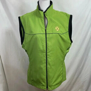 Zero Restriction Golf Ladies Medium Green with Black Trim Zip Front Vest. Good pre owned condition. Zippered pockets with a cinched waist in back.