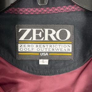 Zero Restriction Men's Windbreaker in size L. This red houndstooth-patterned jacket combines style and functionality with its performance tech fabric, perfect for golfers. Lightweight and breathable, it provides protection from the wind while ensuring comfort during your game. A great choice for both the golf course and casual outings.