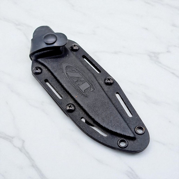 Durable and sleek black sheath by ZT. Perfect for securing your tools with style. 7 In overall approximately 1.5 x 5 in blade.