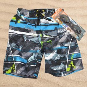 Zero Xposur Boys Sharks Swim Trunks w/ Goggles - NWT