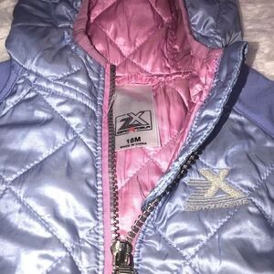 Gorgeous purple and pink trimmed Zero Xposur jacket, size 18 months. Jacket is in excellent almost new condition, with cute conch style waist. Thanks for looking!😊