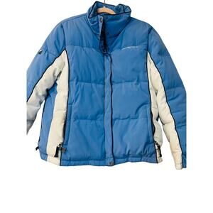 Zero Xposur Women Blue White Winter Ski Snowboard Jacket XL Down Feather Filling